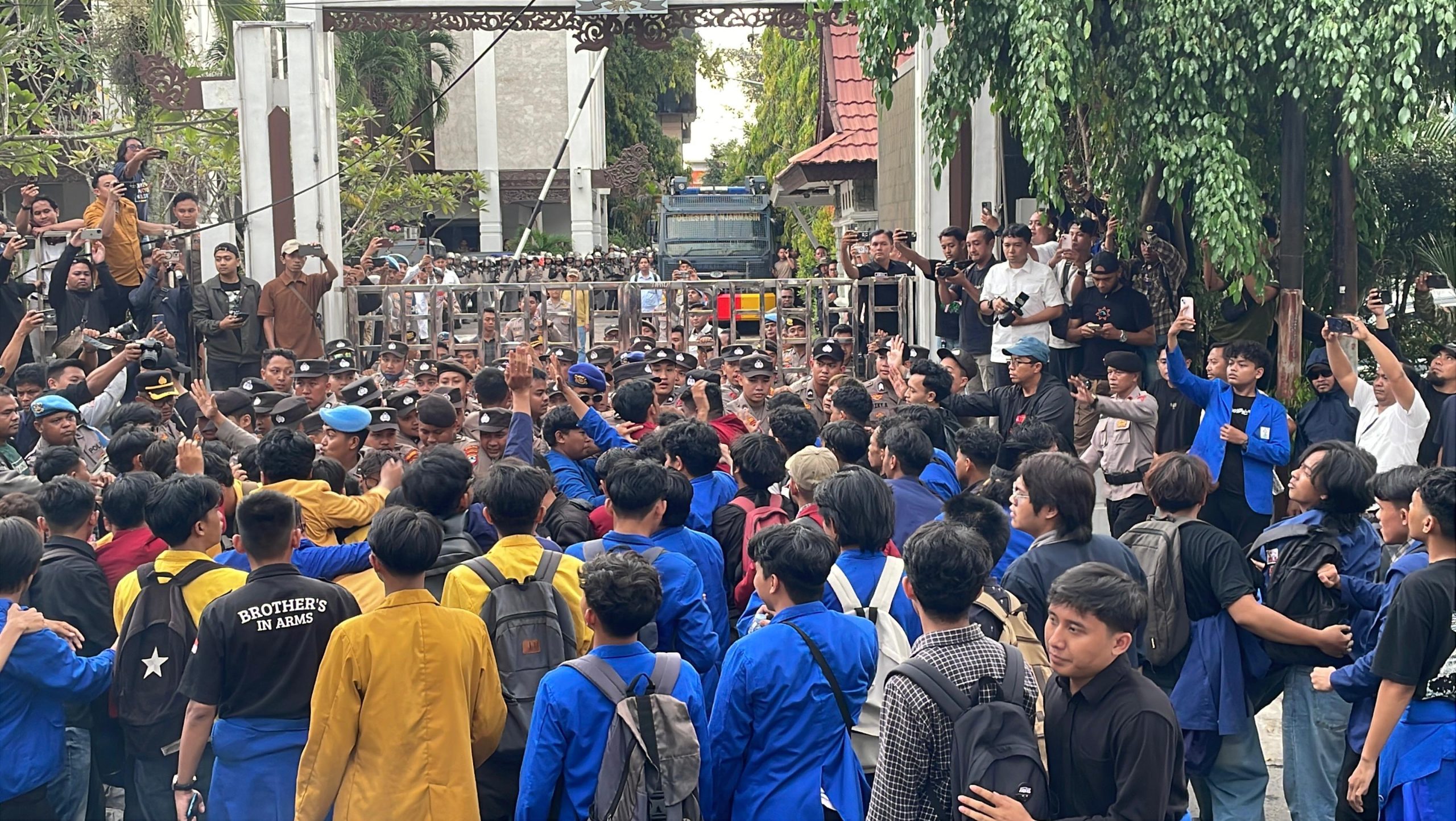 Upaya tersebut dihadang oleh aparat kepolisian yang berjaga di lokasi, sehingga bentrokan antara massa aksi dan aparat keamanan tidak dapat terhindarkan. Ketegangan di lokasi sempat berlangsung beberapa saat sebelum situasi berhasil dikendalikan.
