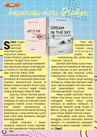duduk di bangku kelas 12 SMA. menulis kembali,” tuturnya.
