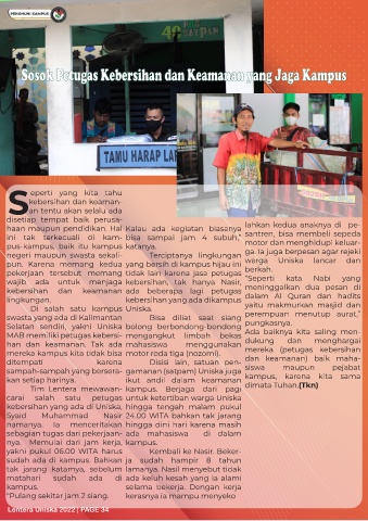 pun. Karena memang kedua yang bersih di kampus hijau ini warga Uniska lancar dan